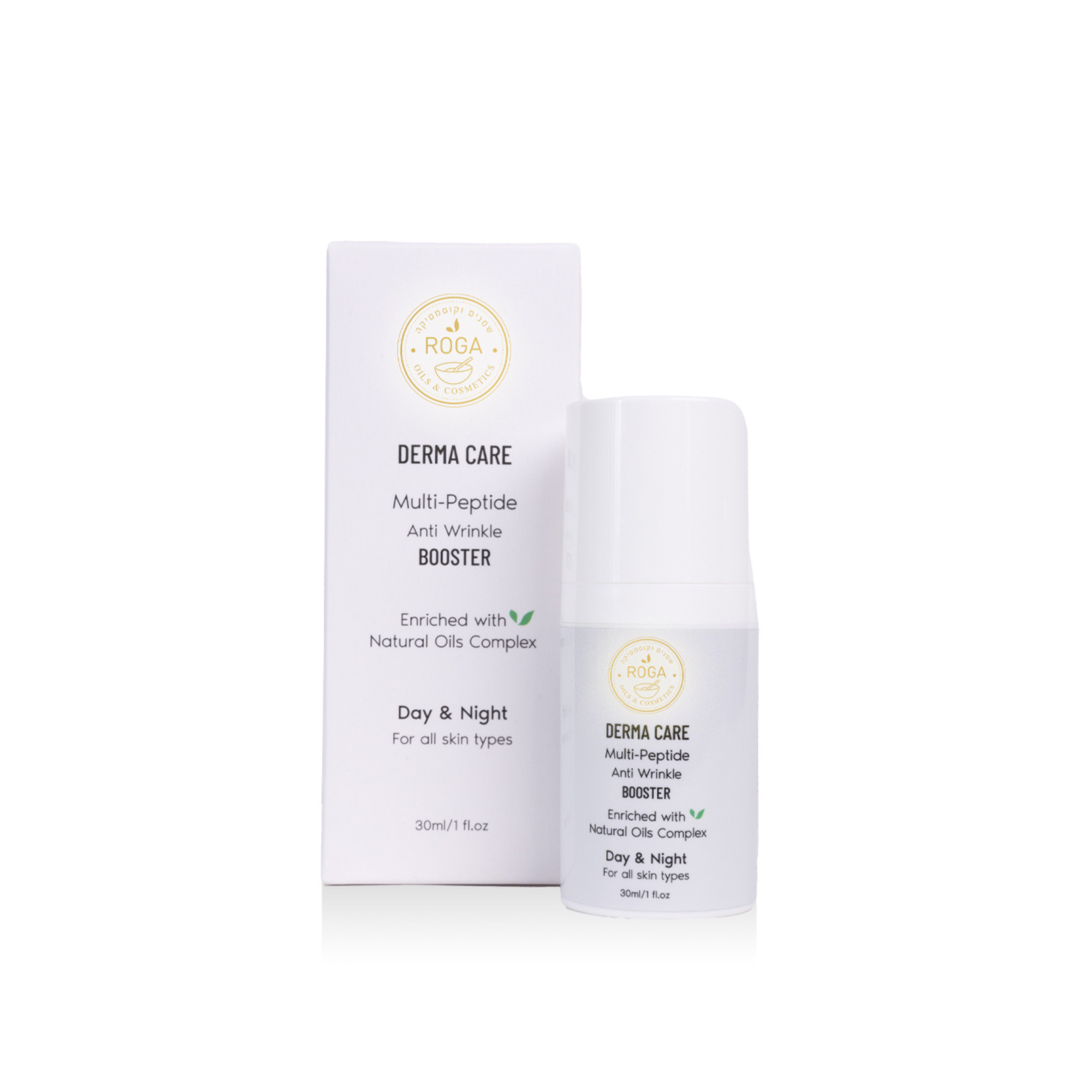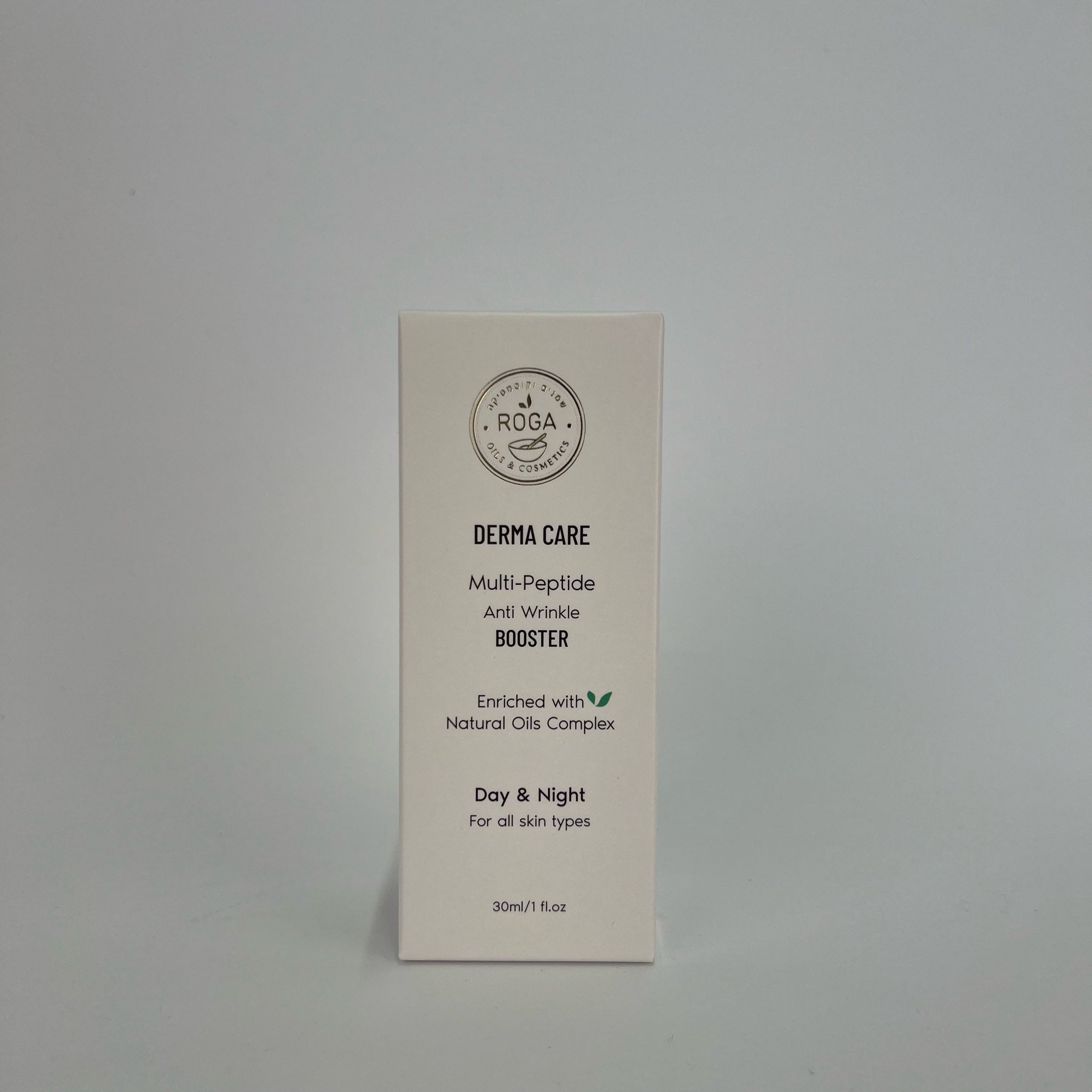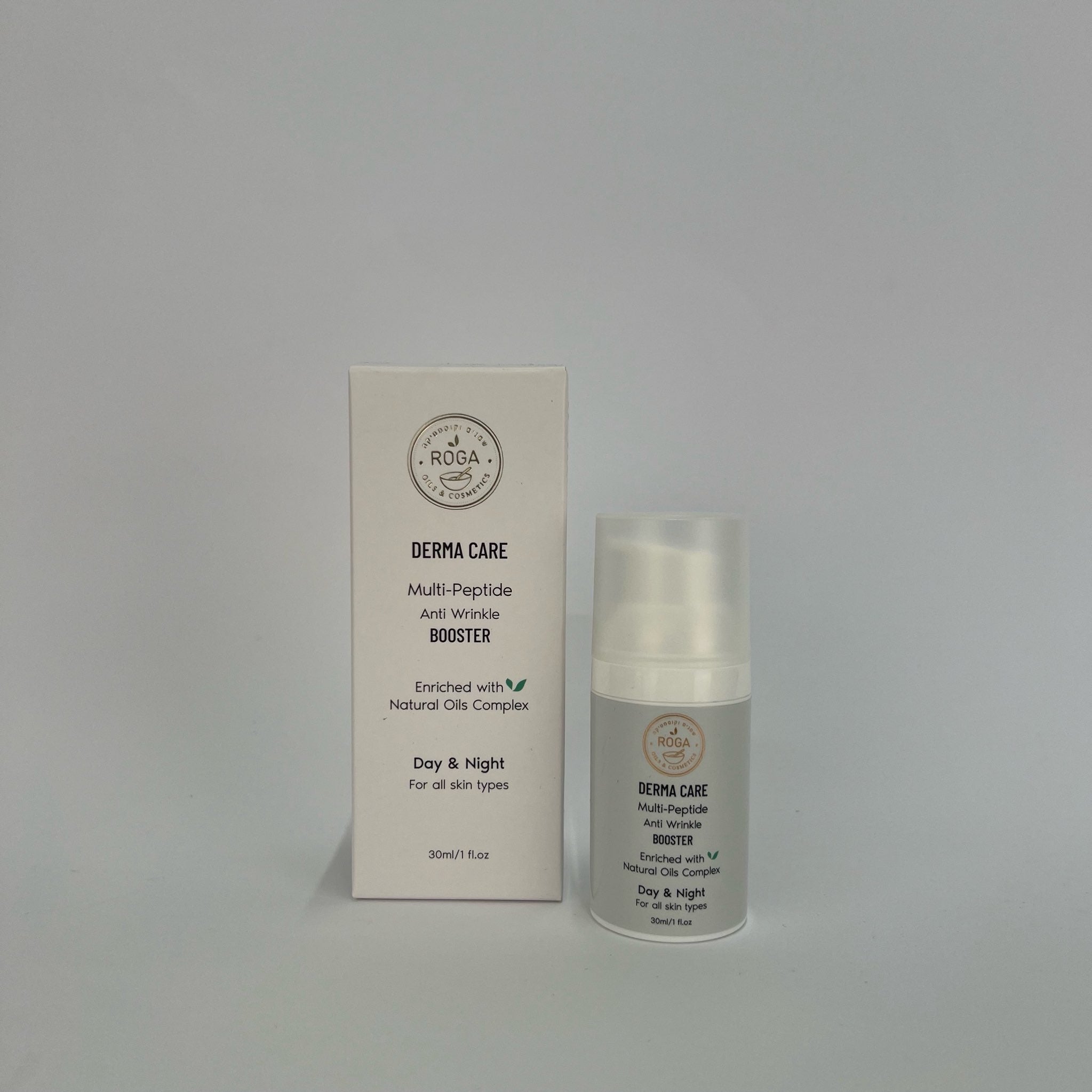 בוסטר אנטי אייג’ינג של רוגע מיוצר לפי פורמולה המבוססת על פפטידים המעודדים התחדשות של תאי הקולגן והאלסטין ובנוסף ממצה את יתרונותיהם הטבעיים של שמן רוז היפ, שמן מורינגה, שמן מרולה, טאמנו, שמן זרעי המפ ושמן זרעי רימונים.